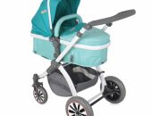 Колеса резиновые, надувные, поворотные, с возможностью ручной блокировки в прямом положении. Верх тканевый со вставкой из противомоскитной сетки, скрытой за молнией. Прогулочный модуль возможно закрепить по ходу и против движения.