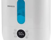 Модель швейцарского бренда Boneco входит во многие рейтинги лучших моделей ультразвуковых увлажнителей воздуха для дома. Покупателей привлекает обтекаемая форма прибора и три варианта расцветки — зеленая, голубая и белая. Конструкция максимально проста: механическое управление, отсутствие датчика влажности, есть деминерализующий фильтр и индикатор низкого уровня воды.