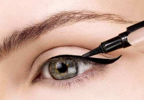 Если пока нет большого опыта, можно нанести стрелки сначала мелкой пунктирной линией. Кроме этого, прежде чем использовать подводку непосредственно для глаз, попробуйте попрактиковаться на внешней стороне руки.