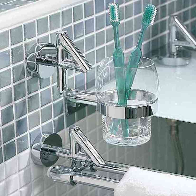 Зубные щётки тоже обретут достойное место в стаканчике интересного дизайна из стекла.