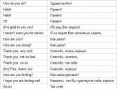 Более-менее More or less Мо: о: лэс Неплохо Not too bad Нот ту: бэд Все хорошо, спасибо I am very well, thank you Ай эм вери уэл, сенк ю У меня все прекрасно I am fine! Ай эм файн Что нового? What's new? What is the news? Уотс нью? Уот из зэ ньюз? Как поживаете? How are you? How are you getting on? Хау а: ю? Хау а: ю геттинг он Как дела? How are you doing? How are things? Хау а: ю: дуинг? Хау а: сингз Здравствуй(те) Hello, hi Хэ'лоу, хай Добрый вечер! Good evening! Гуд и: внинг Добрый день! Good afternoon! Гуд а: фтанун Доброе утро! Good morning! Гуд мо: нинг Всего хорошего! All the best! О: л зэ бэст До свидания! Good bye! Гуд бай До встречи See you Си: ю Завтра Tomorrow Ту'мороу Так себе So-so Соу-соу Хуже не бывает Couldn't be worse Куднт би уёс