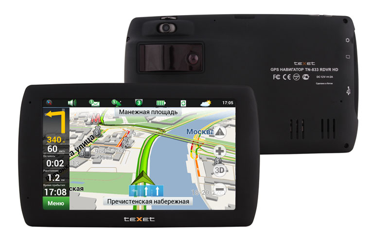 Прибор разнесенного типа совмещает в себе навигатор-видеорегистратор. Посредством встроенного GPS-модуля, в мировой системе координат возможно отследить точное местонахождение транспортного средства.