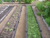 Чтобы во влажную погоду в пространстве между грядок не застаивалась вода, плитку следует укладывать на утрамбованный слой песка и щебня. Они выступят в качестве дренажного слоя отводящего влагу.