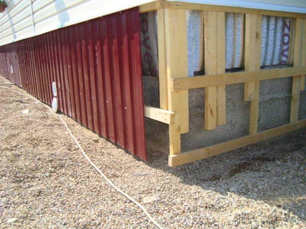 Обустройство цоколя в домах со свайным фундаментом профнастилом осуществляется в таком порядке: