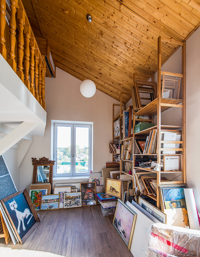 - На втором и третьем этаже находятся кабинет артиста, комнаты для сна, мастерская дочери.