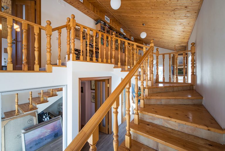 Однако самой главной достопримечательностью дома считается резная лестница, которая проходит по всем этажам. Она выполнена из натурального дерева, покрыта лаком и украшена балясинами.
