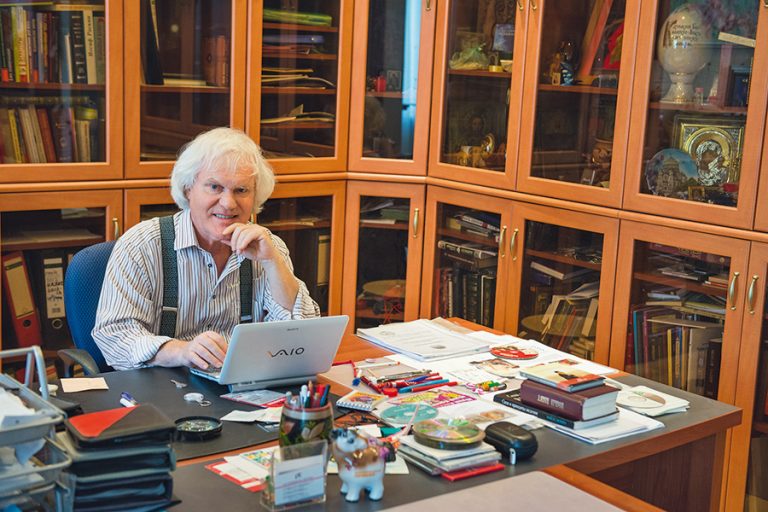 Что касается интерьера, то он сочетает в себе уют и комфорт. В доме много старинной, деревянной мебели, которая помимо своего экстерьера достаточно удобна в использовании. Стены комнат украшены разнообразными картинами и репродукциями. Произведения искусства выполнены как его дочерью, так и знаменитыми художниками.