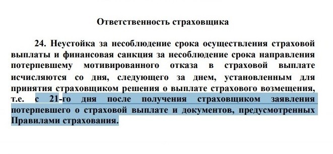ВАЖНО! Отсчет времени с зачислением неустойки начинается со дня, следующего за датой принятия решения о покрытии ущерба или направления авто на ремонт.