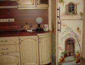 Как и роспись своими руками, декупаж требует проявления креативности и мастерства. Чтобы кухня выглядела гармонично, следует подбирать рисунок, соответствующий интерьерному стилю. Декупаж предполагает украшение поверхности вырезанными из бумаги изображениями.