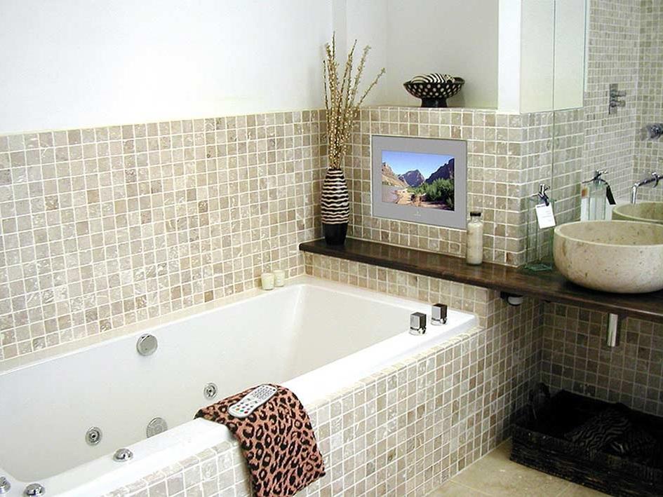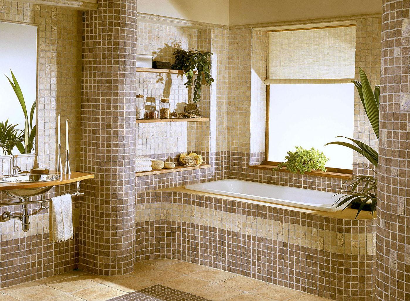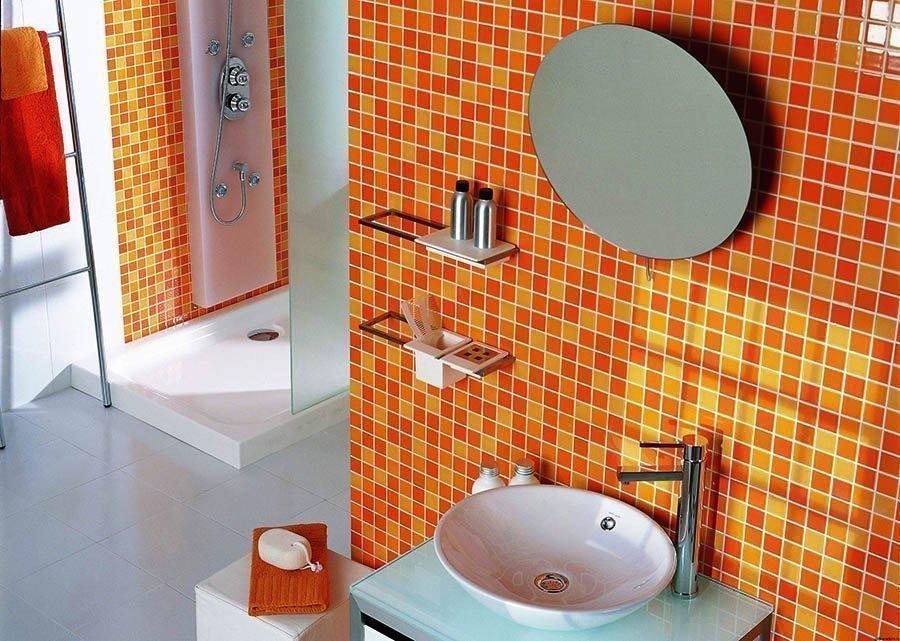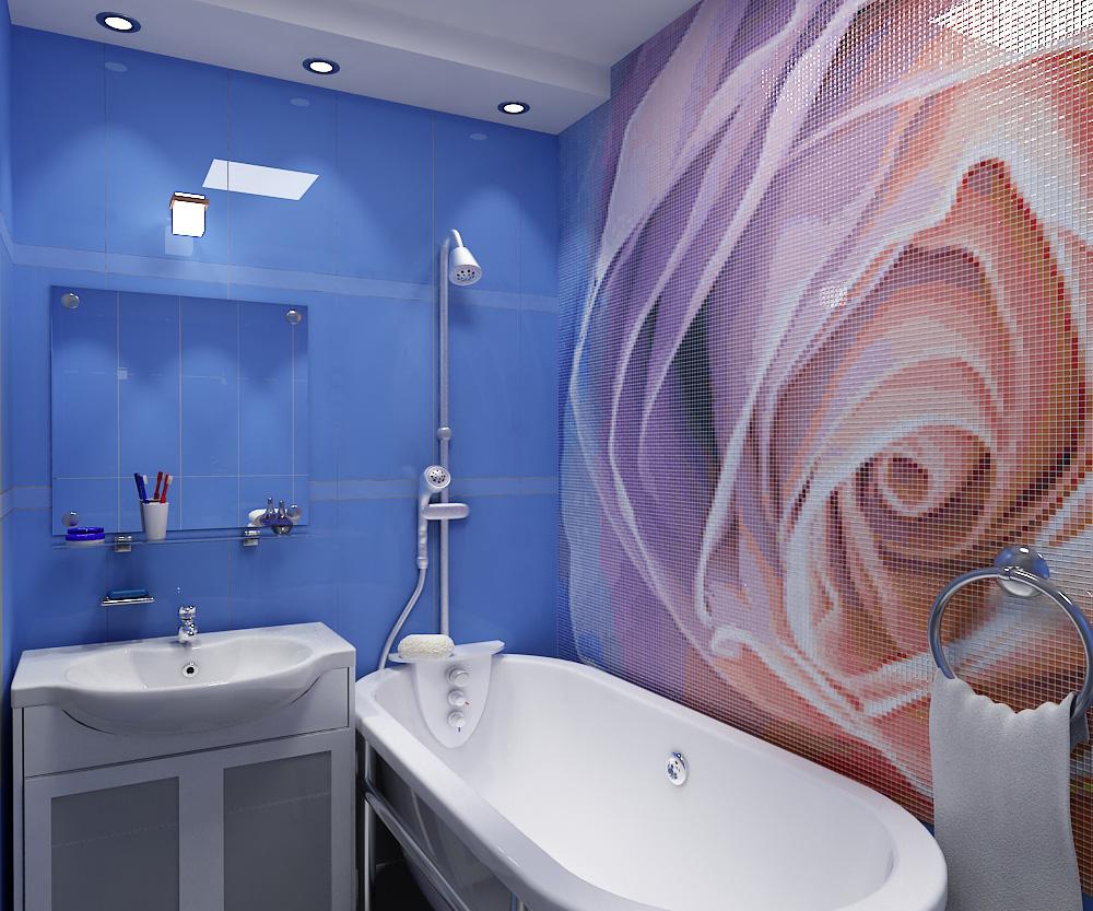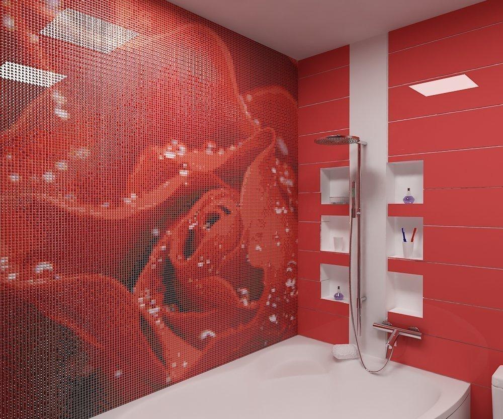 Мозаика — это мелкая плитка. Мозаику можно использовать для оформления ванной комнаты целиком или для выделения отдельных её частей: пространства над плинтусами, душевой зоны, ниш в стенах.