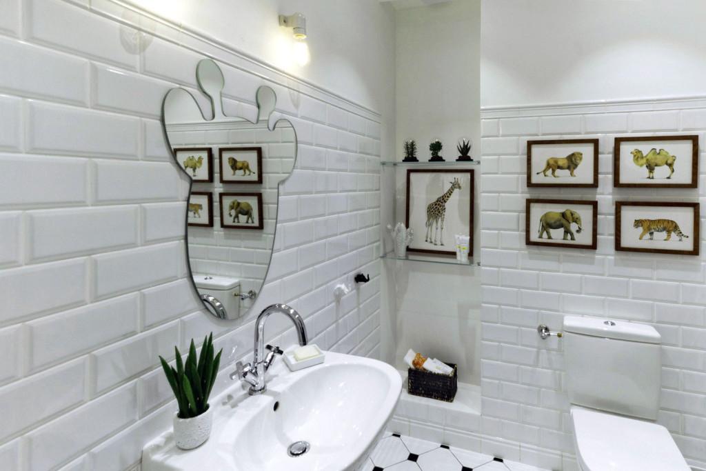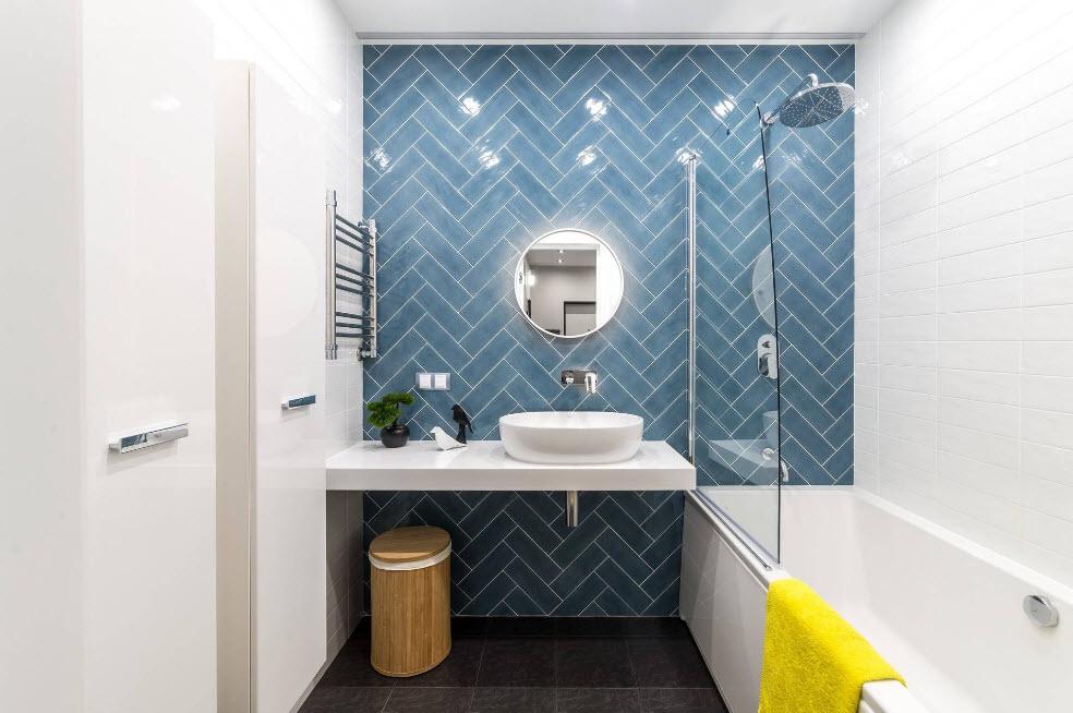 Ещё один популярный вариант оформления ванных комнат. Отдельные детали складываются в целостную картину.
