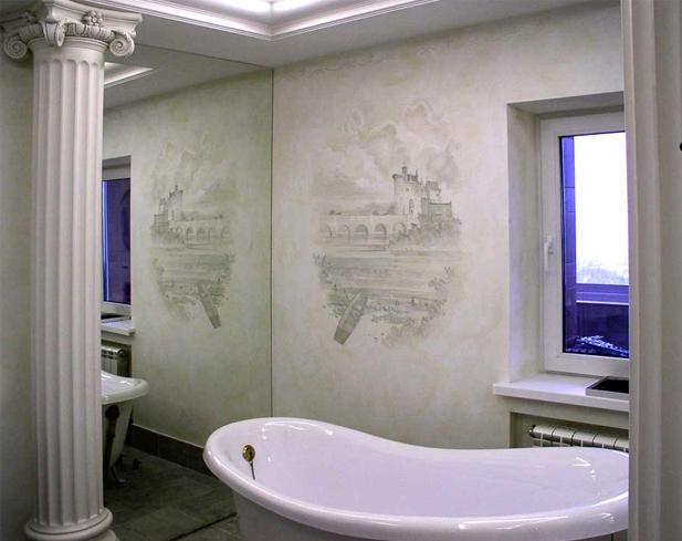 Использование декоративной штукатурки для отделки ванной комнаты позволяет создать неповторимый интерьер. Талантливые мастера способны создавать на стенах настоящие шедевры. Главное — подобрать качественный материал и найти опытного специалиста.