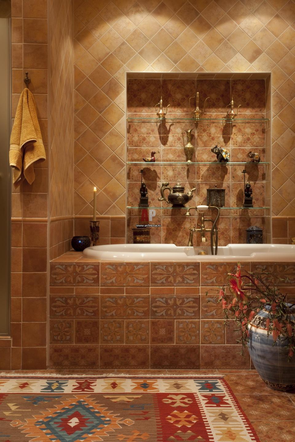 Интересно могут смотреться в оформлении ванной комнаты восточные мотивы.