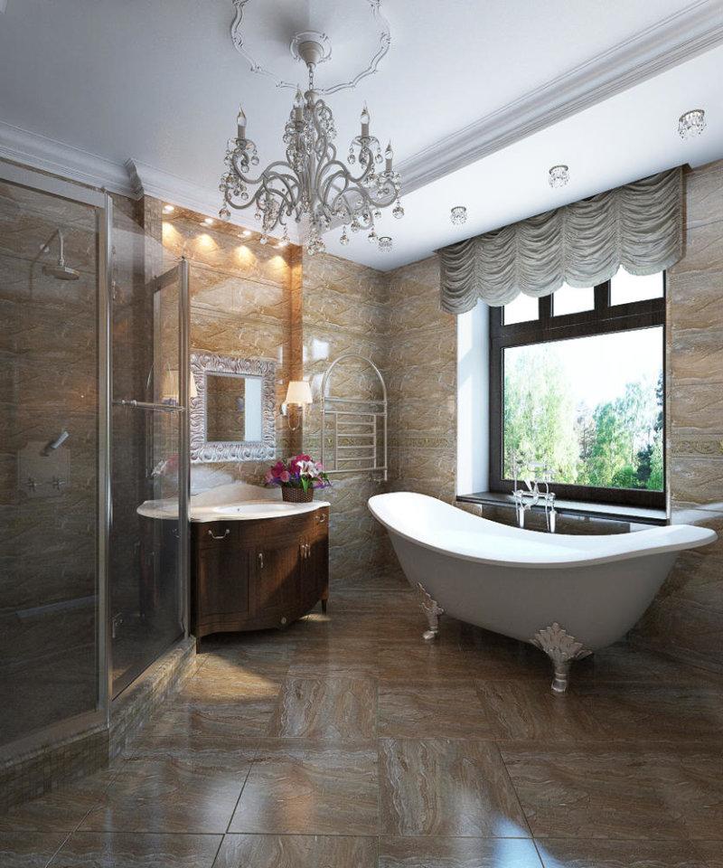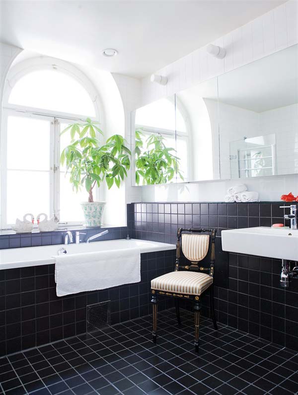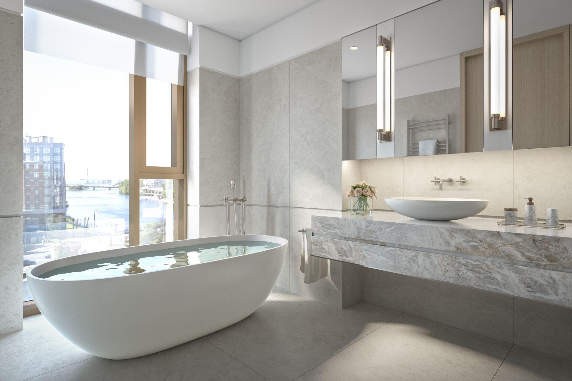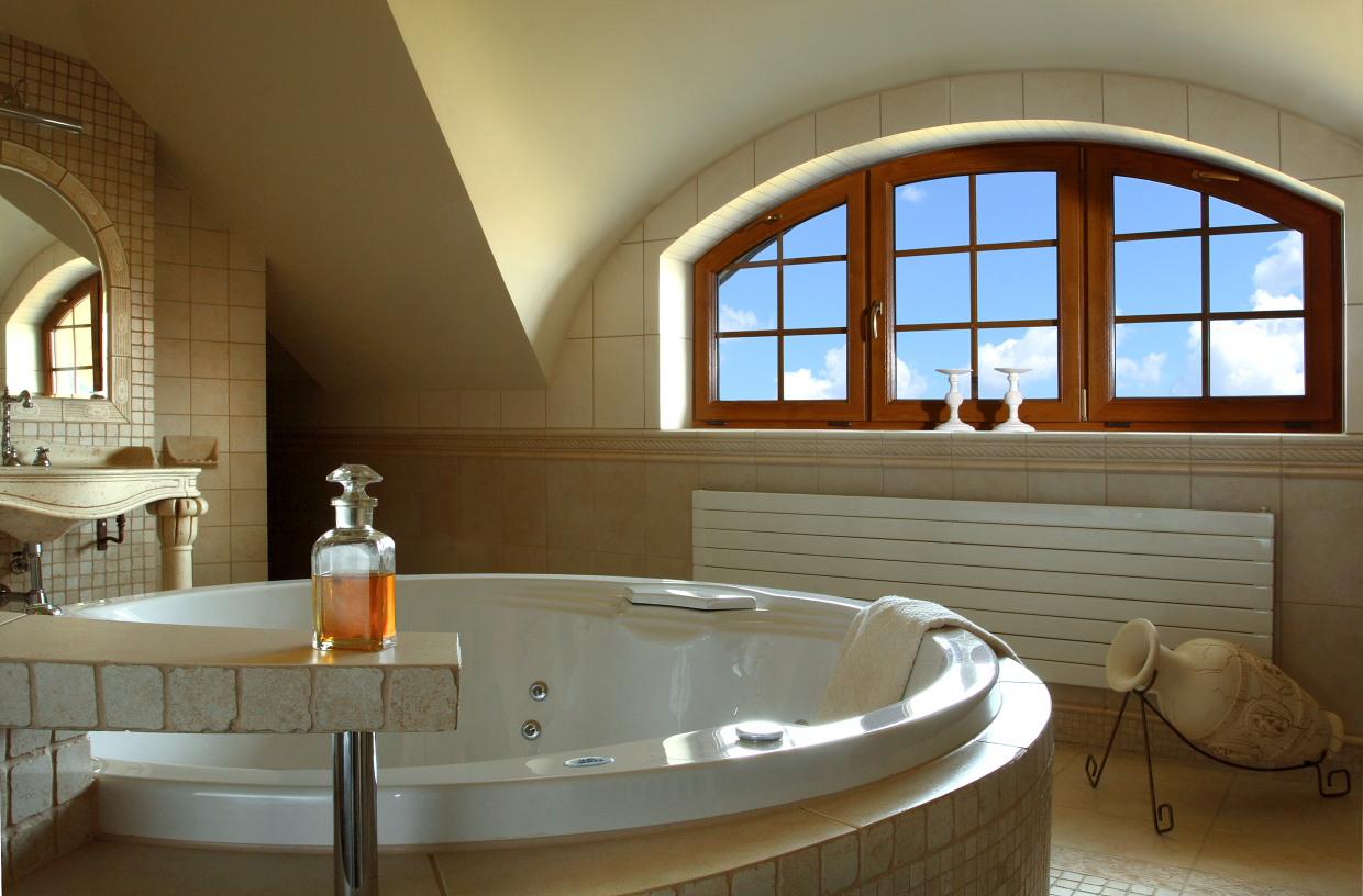 Большое окно сделает пространство ванной комнаты лёгким и светлым.