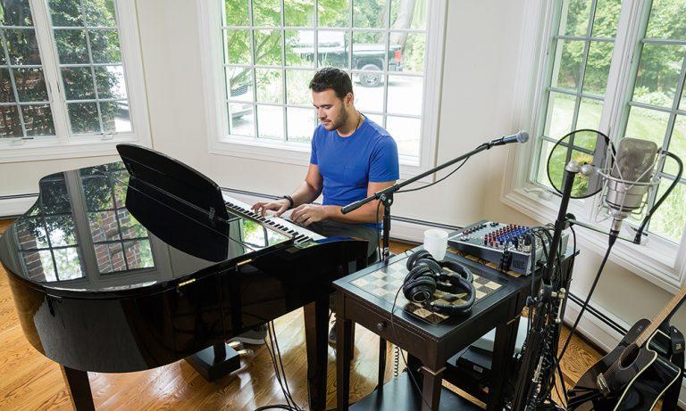 Одна комната предназначена для хранения профессиональных музыкальных инструментов. Это помещение — домашняя студия знаменитого певца. Здесь проходят репетиции артиста с музыкантами.