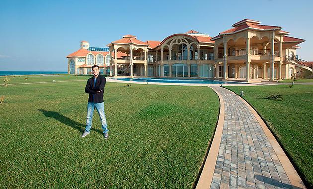 Дом площадью 4500 квадратных метров построен певцом в Баку. Стены многих помещений стеклянные, чтобы в полной мере ощущались раздолье и воздушность. По разработанному архитектором из Японии проекту из каждой комнаты здания открываются минимум 2 вида на море.