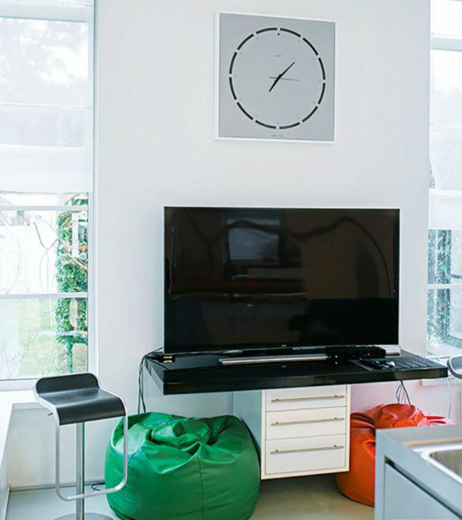 Принципиально выбранный за основу белый цвет, со временем разбавили яркими акцентами и панно.