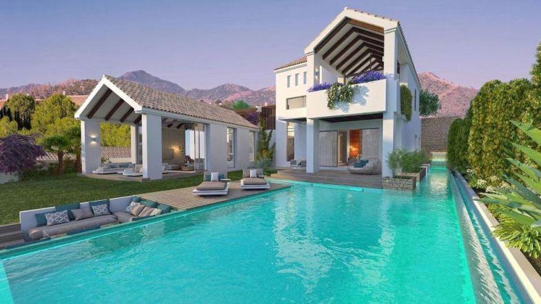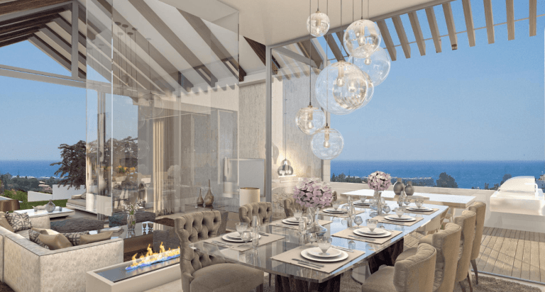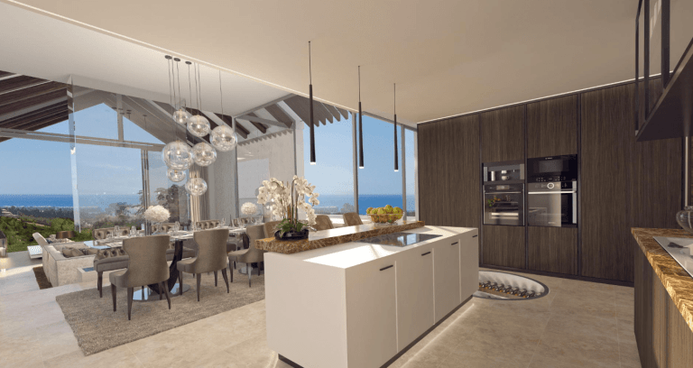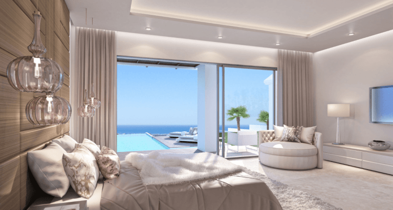 Он расположен рядом с побережьем. Вилла отличается стильным видом. У нее 2 этажа, винный погреб, спортзал, СПА, а также панорамные окна на море.