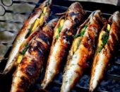 - Пока рыба будет жариться – не забывайте её сбрызгивать сухим вином. Время приготовления рыбной закуски – 15-20 минут. Периодически решётку с рыбными тушками необходимо переворачивать.