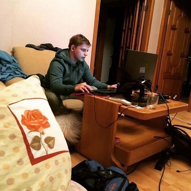 Блогер часто проводит время, сидя за компьютером. Вместо кресла, парень выбрал мягкий, просторный угловой диван. Рабочее пространство он организовал в гостиной. Бежевые стены комнаты гармонично сочетаются со светлой мебелью. Иногда подписчики замечают слегка неряшливую обстановку комнаты. Разбросанные вещи для Максима — обычное дело.
