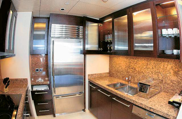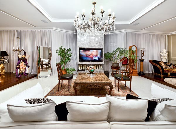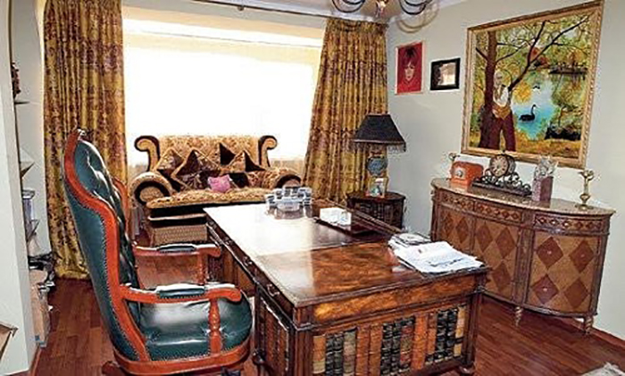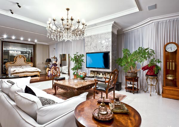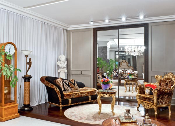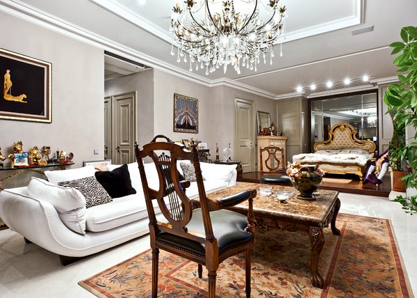 Для гостиной артист прикупил стол и кресло от «Gucci» с леопардовой обивкой. Вместо прихожей, выделена уютная зона для встречи гостей. Здесь расположен небольшой журнальный стол с золотистыми ножками, а также диван и кресло, выполненные в классическом стиле. Нашлось в апартаментах место и для нескольких гардеробных. По словам Бориса, для артиста это крайне важно.