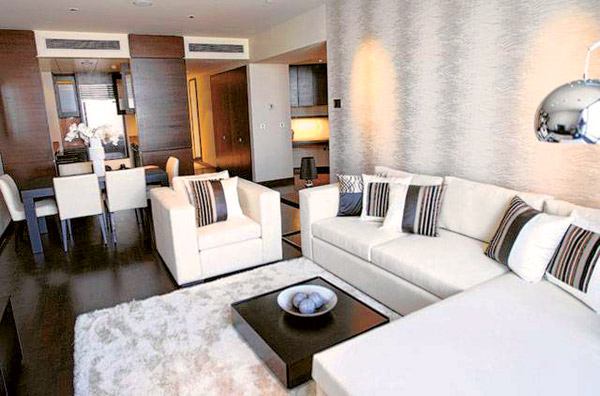 Апартаменты певца по «звездным» меркам достаточно скромны: чуть больше 140 кв. м. В квартире 2 спальни, ванная, кухня и просторная гостиная. В интерьере преобладает минимализм, нет лишних деталей. «Обожаю, когда в доме много света», — рассказывает журналистам певец. Поэтому в квартире установлены большие окна в пол, а комнаты оформлены в светлых тонах. Богатую обстановку в апартаментах создают красивые зеркала в стиле барокко и белая кожаная мебель.