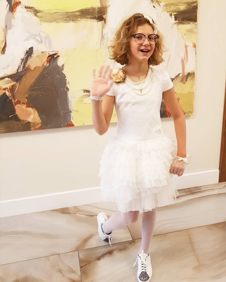 Первое, что привлекает внимание при входе в холл жилища — это пол. Мраморная переливающаяся плитка с абстрактным рисунком в молочном и светло-коричневом цвете восхищает. Зеркало размером с одну треть стены заключено в деревянную посеребренную раму. Занимательная картина, выполненная с виду небрежными крупными мазками, изображает девушек в белых платьях.