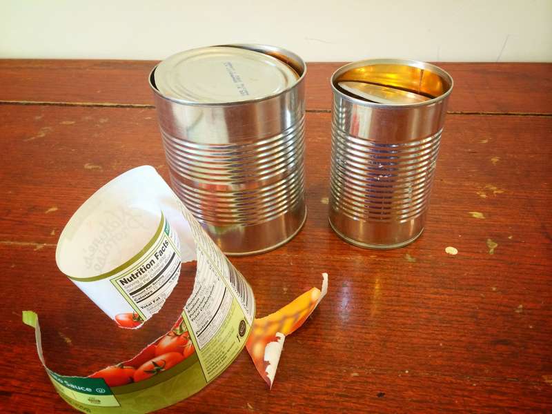 Банку зачищаем наждачной бумагой, удаляя ржавчину и острые края. Тщательно протираем жидкостью для снятия лака (или спиртом, или растворителем).