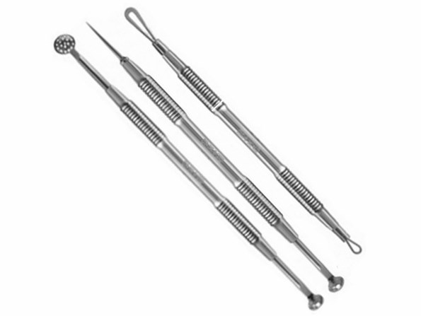 Наборы для очищения кожи охотно раскупаются женщинами разных возрастов. Инструменты для механической чистки легко купить в отделах с товарами для здоровья. Заказать через интернет. Разновидностей существует очень много. Они представляют собой гладкие палочки, изготовленные из медицинской стали. На концах расположены петли, иглы и прочие «насадки», позволяющие оздоровить эпителий.