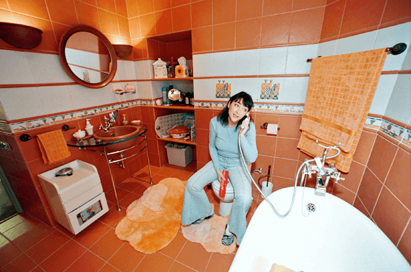 Коврики на полу и полотенца гармонируют с песочным и кирпичным цветами помещения, а неяркая подсветка стены у зеркала придает ванной комнате уют и теплую атмосферу. Квартира певицы не отличалась шикарной обстановкой, но была выполнена изящно и со вкусом.