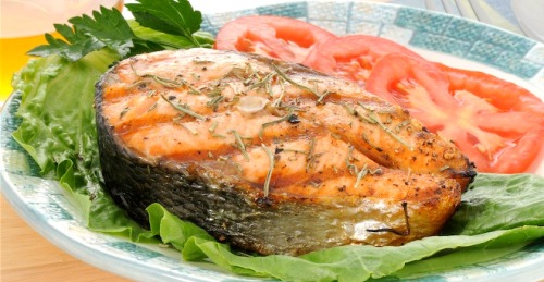 Чтобы снизить нагрузку на желудок — употребляйте вкусные жареные стейки с сырыми овощами или же с отварным рисом. Если предпочтение отдадите рису, то порцию жареной рыбы следует разделить на 2 раза.