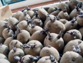 Разложим картофель в тёмном сарае, чтобы он не позеленел от света. Недели через две, когда он отлежится, переберём его на мелкий и крупный и опустим в погреб на хранение.