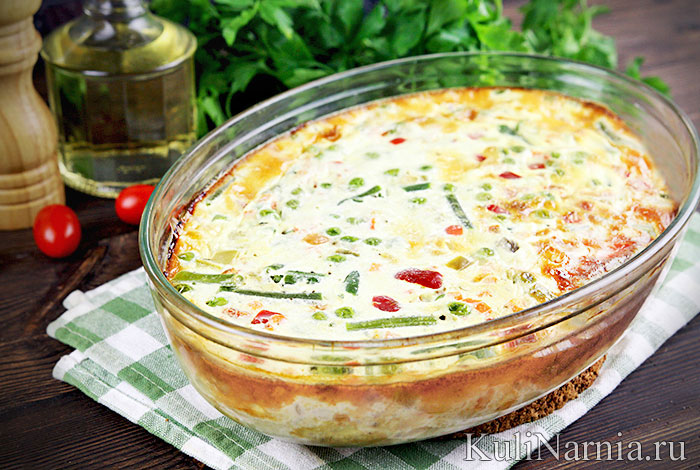 Начинку запеканки можно менять исходя из предпочтений: добавлять морковь, лук, зеленый горошек, морскую капусту, грибы, класть любую зелень — укроп, петрушку, сельдерей, шпинат и т. д. Нередко добавляют крупы и макароны.