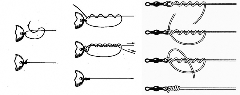 Крепление блесны к поводку осуществляется несколькими типами узлов: