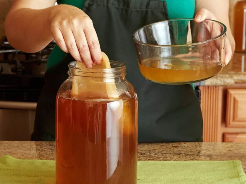 Через 7–10 дней должен появиться резкий уксусных запах. Он говорит о том, что процесс идёт правильно! Неприятный аромат практически исчезнет через 5–7 дней. К этому времени на поверхности жидкости вы увидите тонкую плёнку — это и есть появившийся чайный гриб. Со временем его объём будет расти, и уже через 2–4 недели напиток можно будет пить.