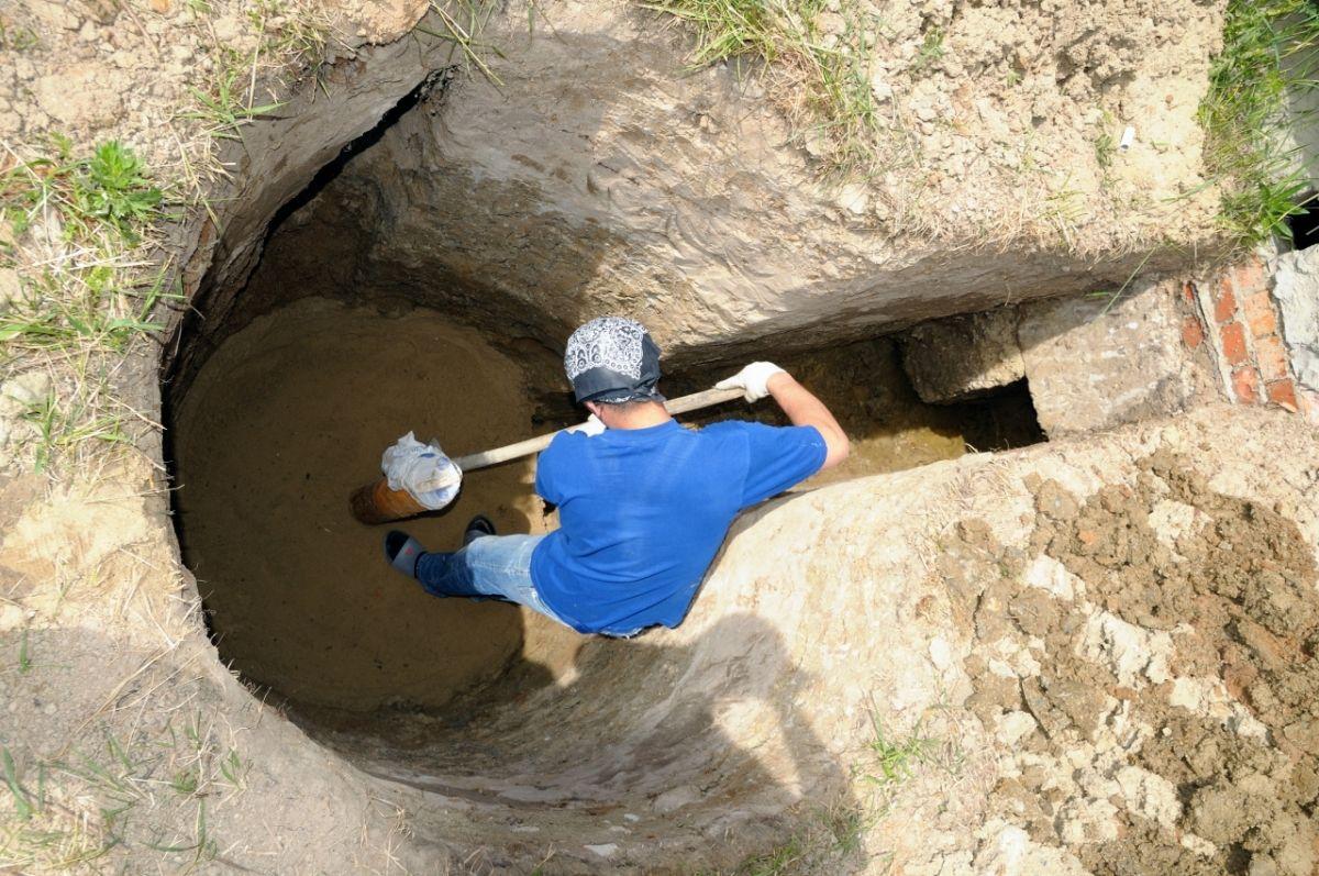 Рекомендуется копать яму вручную, без привлечения экскаватора: так стены получатся ровнее, будут меньше осыпаться. Если почва рыхлая, рекомендуется яму сделать пологой.