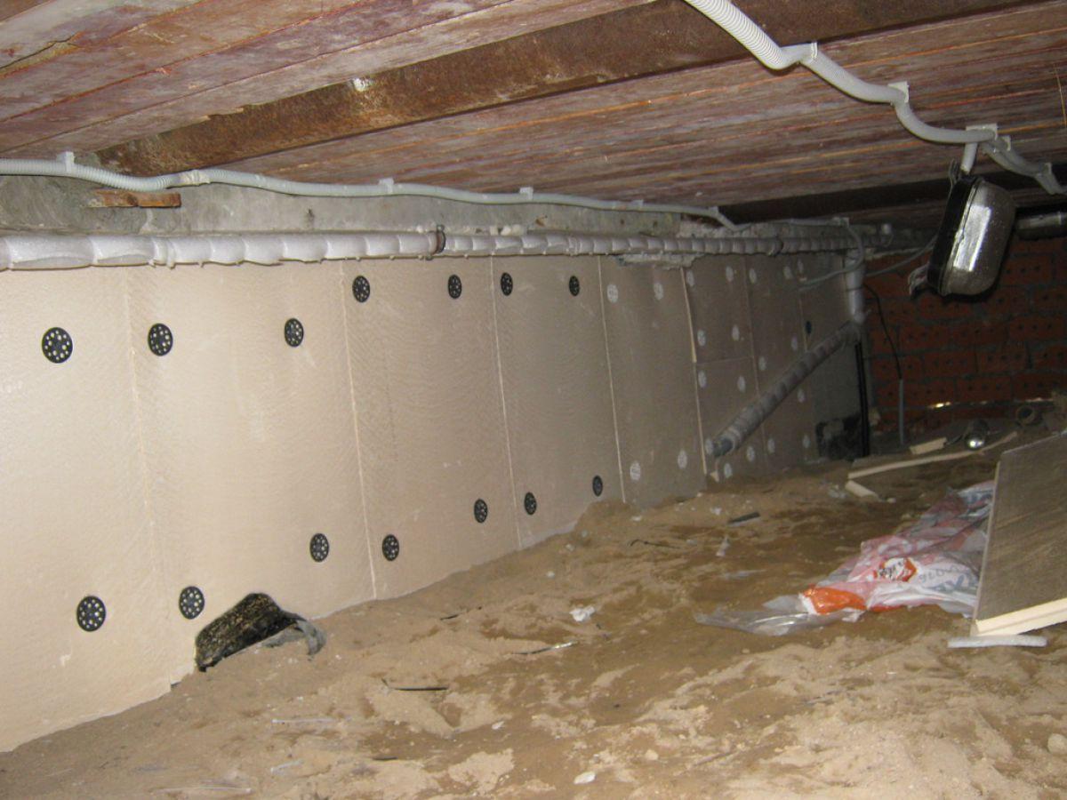 Если утеплить цоколь с внешней стороны не представляется возможным, то эта процедура проводится на внутренних стенах подвала. В большинстве случаев этот процесс совмещается с финишной отделкой, когда помещение оборудуется под баню, мастерскую или кладовую. Большое внимание уделяется гидроизоляции бетона, так как вода является причиной сырости и грибка.