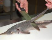 Если ямка выпрямится быстро, практически на глазах, осетр свежий. Не стоит покупать для засолки мороженую рыбу.