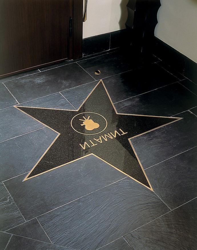 Квартиру рэпера найти нетрудно — на лестничной клетке перед входной дверью красуется гранитная звезда с именем исполнителя. Это точная копия знака с «Аллеи Славы».