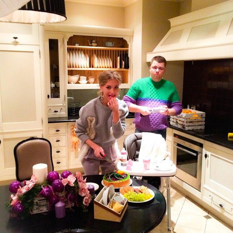 Кухня выполнена тоже в черно-белом цвете. А полки для посуды — верх совершенства. Так и хочется присесть за стол и выпить чашечку 5 o’clock tea в компании Гарика и его жены.