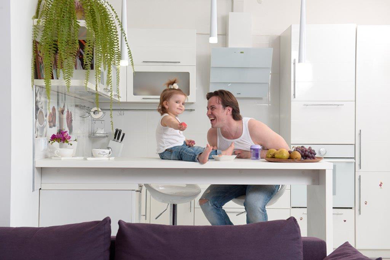 В то же время белый цвет сочетается с любым другим и позволяет оттенить интерьер яркими радужными акцентами. Чашка с чаем на керамическом декоре над рабочей поверхностью – символ дома. Одна из традиций молодой семьи – чаепития на балконе, когда утром обсуждаются планы на день, а вечером подводятся итоги.