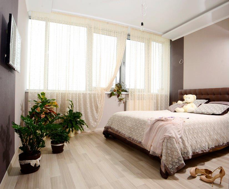 Дополняют декор светлой квартиры комнатные растения. Они расставлены по всему пространству, но большая их часть размещена в спальне звездной семьи.