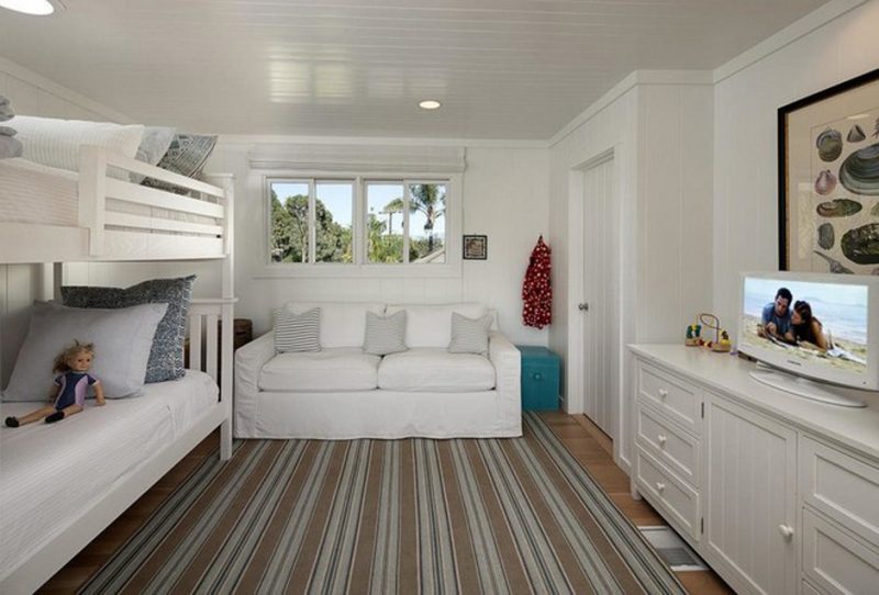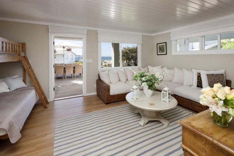 Новая летняя резиденция построена в классическом для Калифорнии морском стиле. На относительно небольшой площади в 300 кв.м расположились 6 спален, 6 ванных комнат, кухня-столовая, гостиная, гардеробная.