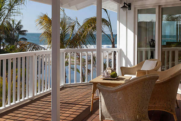 Электрический камин, деревянные балки, доски для серфинга вместо картин — идеальное решение для выбранной концепции. Практически в нескольких метрах от виллы колышется океан. С деревянной веранды приятно на закате любоваться приливами и отливами.