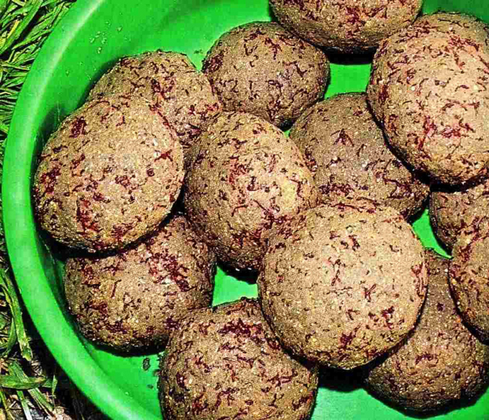 Навозных червей порубите на мелкие кусочки. Тип грунта зависит от поведения воды: штиль – насыпаем песок, течение – добавляем глину. Все ингредиенты смешиваем, скатываем в шары. Их размер зависит от дальности заброса (чтобы вы смогли кинуть).