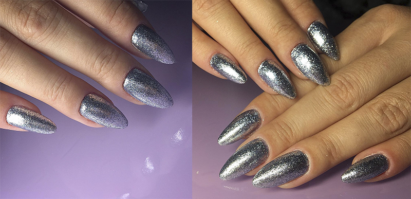 лак с блестками, пример маникюрасухие блестки, пример маникюра