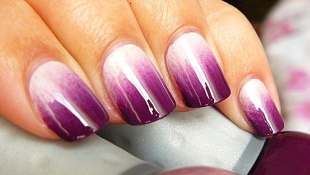 При этом более насыщенный цвет наносят на большой палец, а самый нежный и светлый тон на мизинец. Граница переходов оттенков делается не четкой, а размытой.