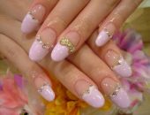 Чтобы маникюр с розовым лаком и стразами выглядел интеллигентно, придерживайтесь следующего правила. Длинные ногти красьте нежно-розовыми лаками, а вот в случае с короткими можете позволить себе даже дерзкую фуксию.