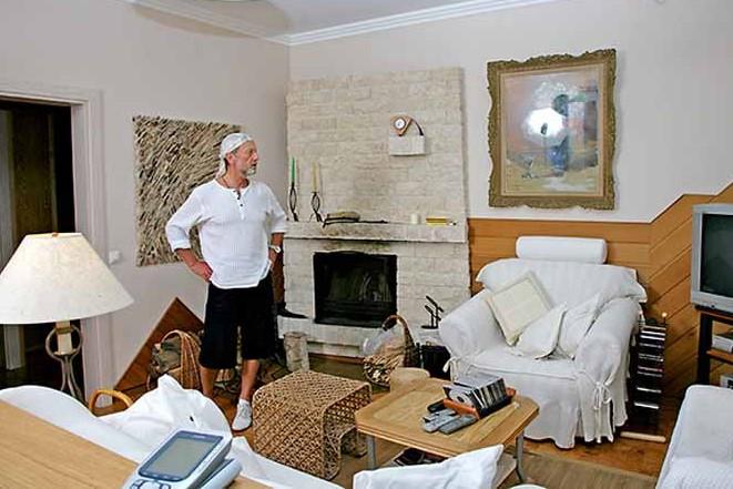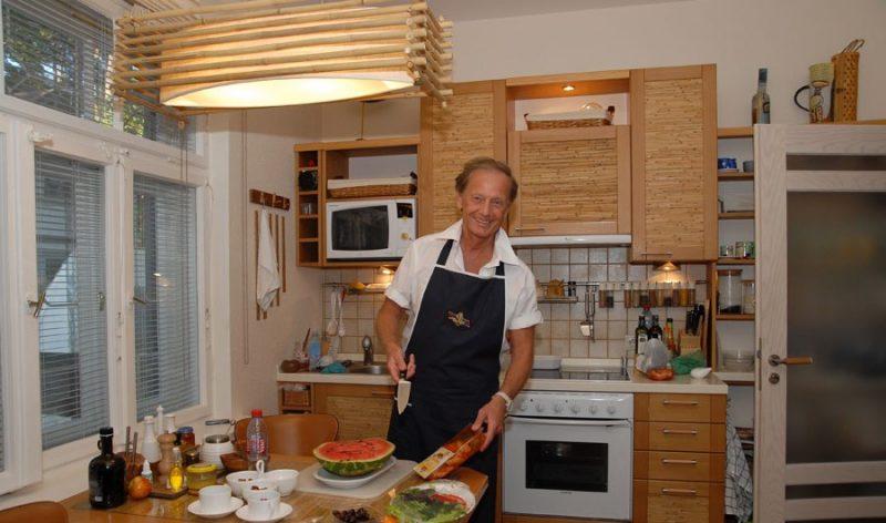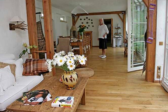 В оформлении интерьера превалирует белый цвет в сочетании с натуральным деревом. Рустикальный, кантри стиль был по нраву звездному писателю-сатирику. Мебель из ротанга, предметы интерьера из соломы еще одно тому доказательство.