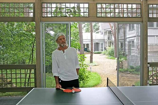 В доме имеется небольшой спортивный зал. Сатирик был поклонником настольного тенниса. В доме много света и свежего воздуха. Панорамные раздвижные окна-двери в его доме, кажется, повсюду.